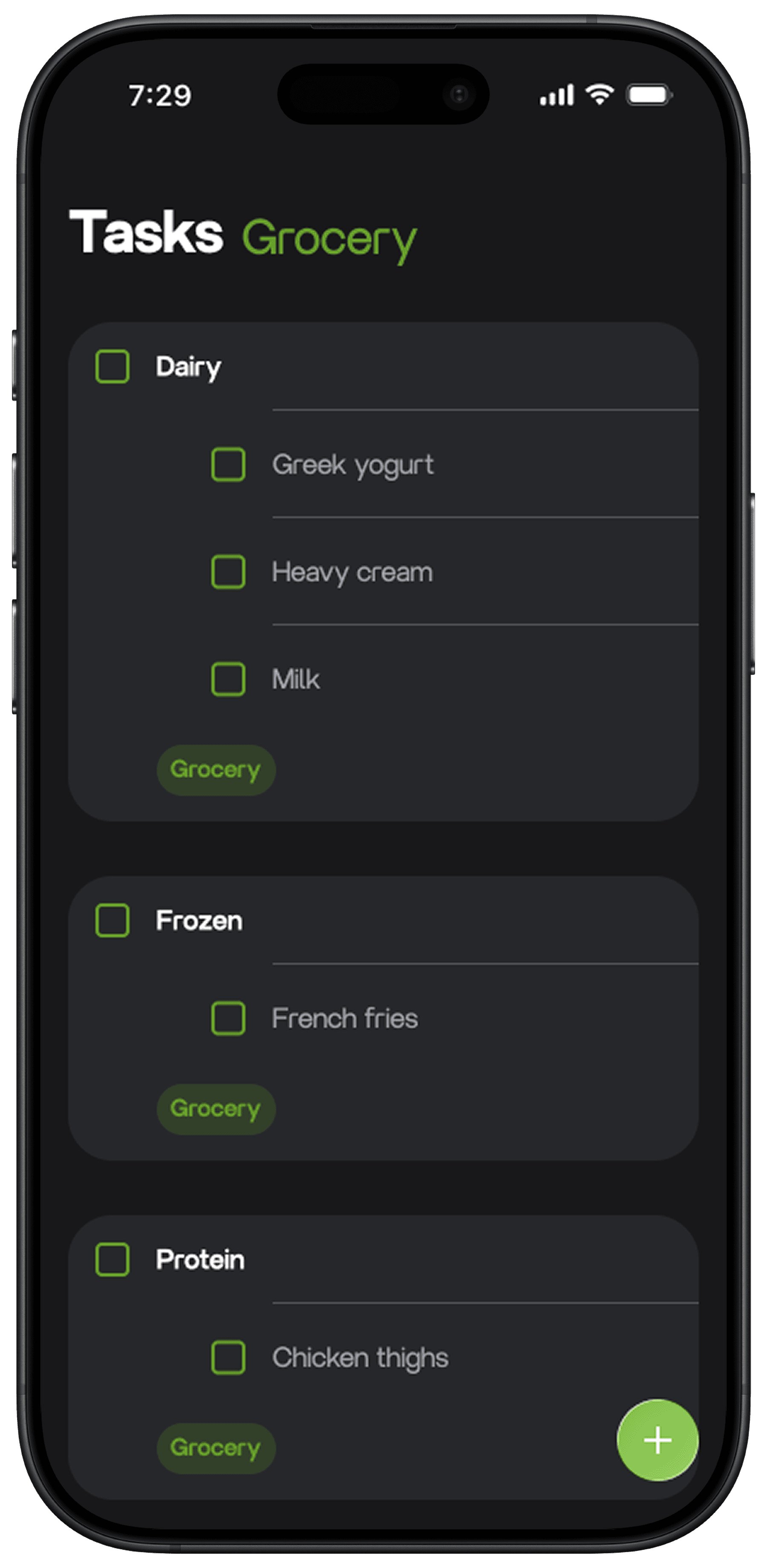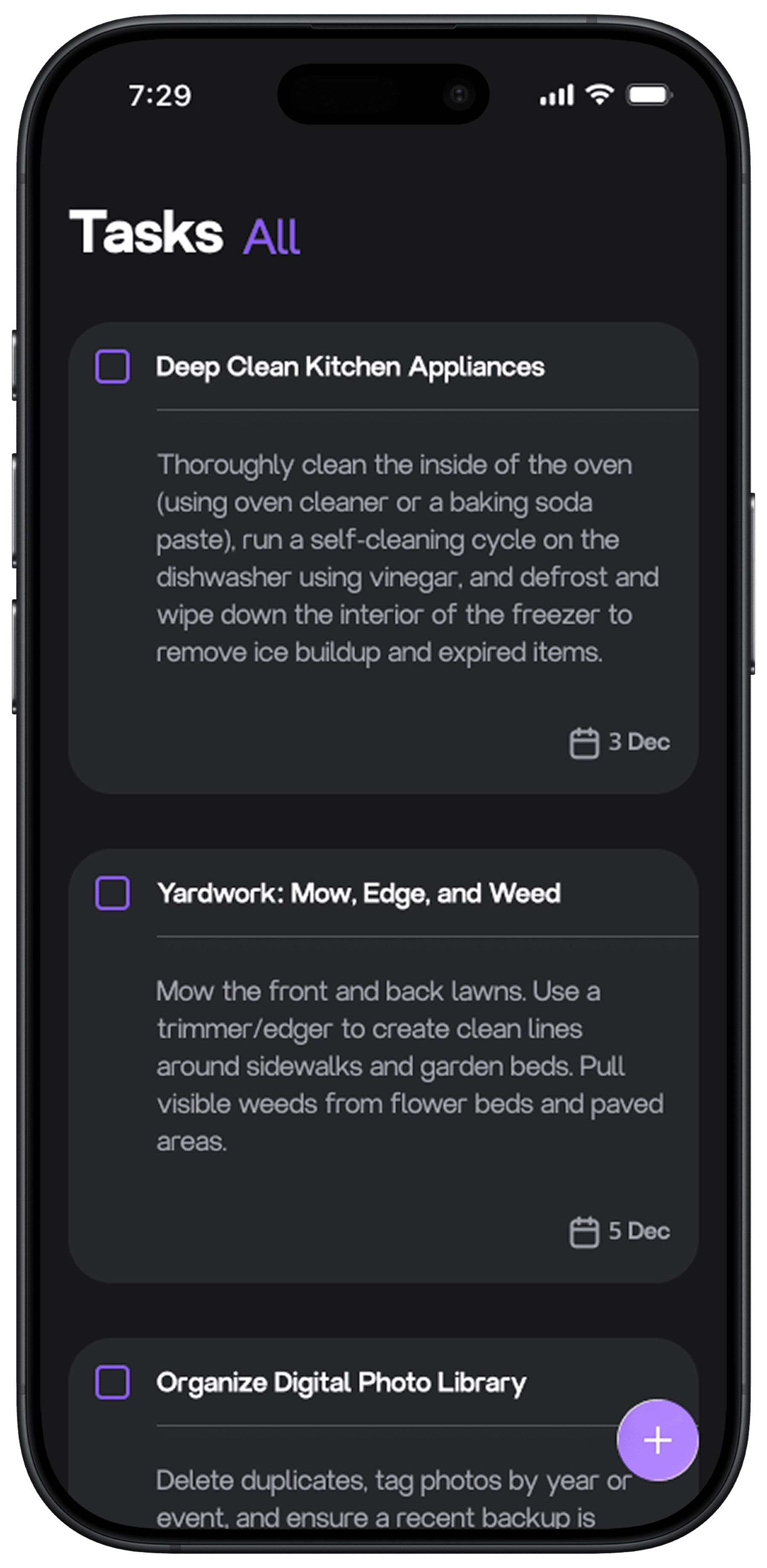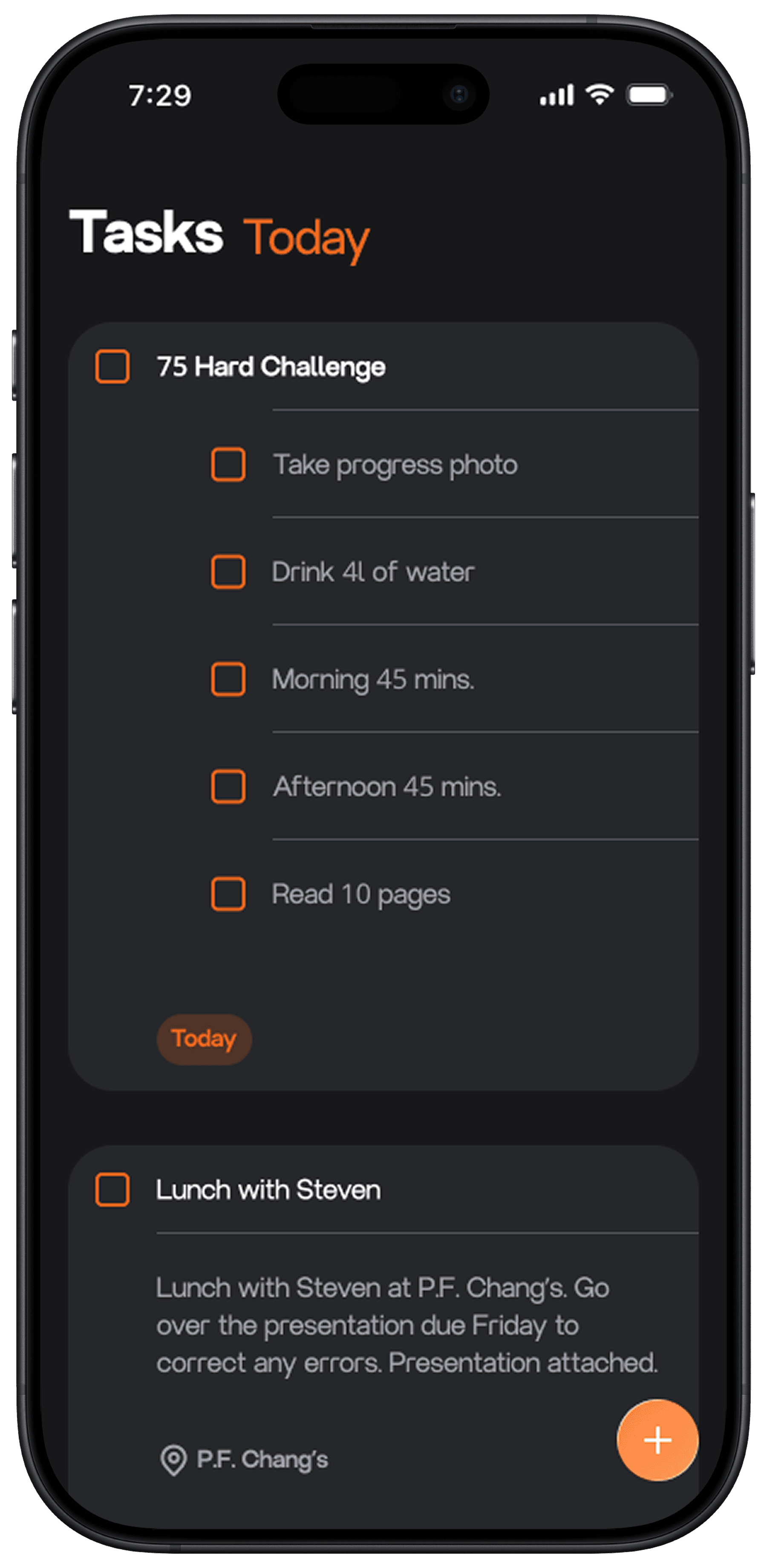 Action: To make the app more user-friendly I decided to reduce the app to having only one main screen. Furthermore, the one button along the footer is an action send the user to task creation window.